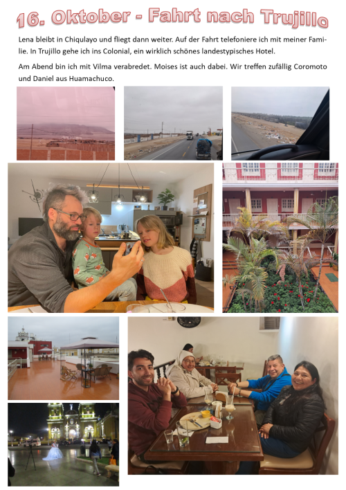 Nach der frühmorgendlichen Fahrt (Trujillo - Chimbote 3 h) treffe ich Felix Sanchez und seine Frau, die mich herumfahren und mir ihre kleine Papayafarm zeigen. Der Mitsubischi ist 34 Jahre alt. Nach dem Mittagessen und einem Kaffee fahre ich dann nach Lima, wo ich nach Mitternacht ankomme und dank des Schlüssels wieder ins Haus der Franziskaner gelange.